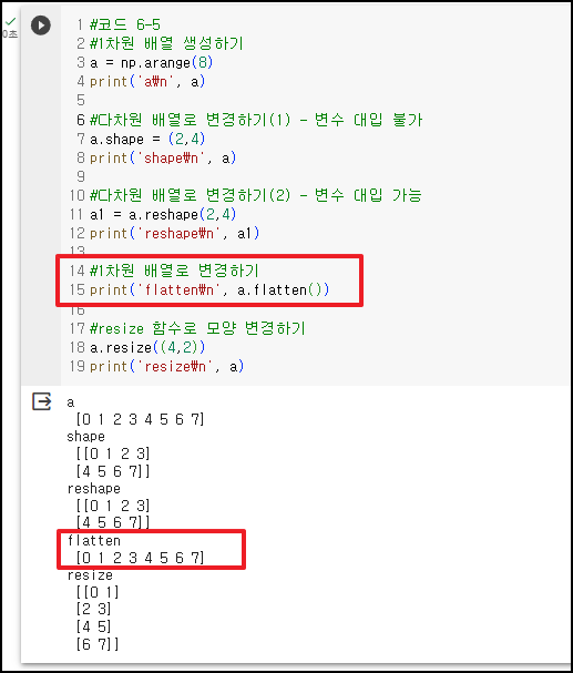 *[n] = *넘파이 행렬의 n번째 단일 값을 출력(0번부터 시작)