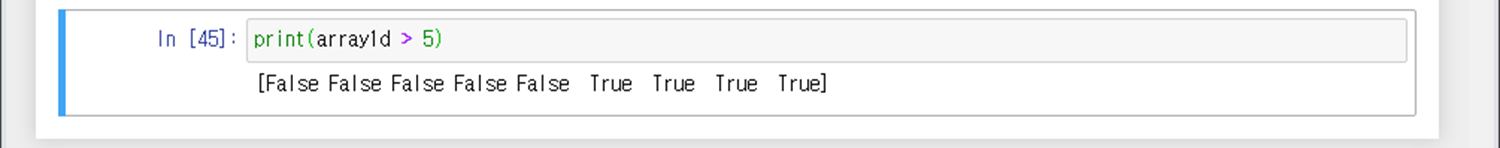 5보다 큰 경우를 print하게 되면 조건만족에 따라 False와 True를 리턴하게 된다.
